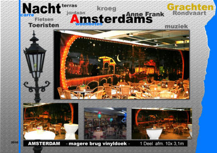 De doeken zijn zo beschilderd dat ze in verschillende maten opgehangen kunnen worden. Zowel in hoogte als in
